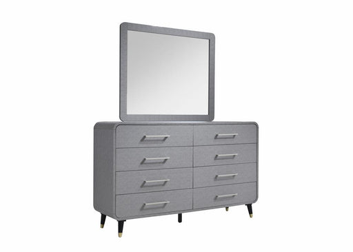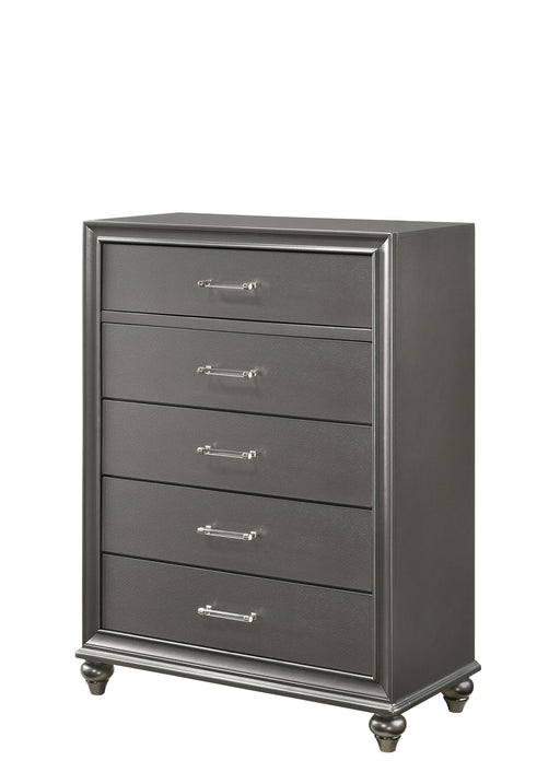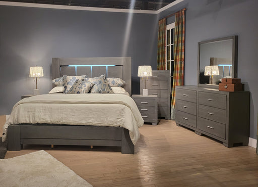 Crown MarkThis contemporary bedroom set presents a crisp, clean look with its gray finish and contrasting dark accents. The simple, straight lines and subtle...