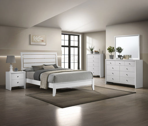 Crown MarkThis bedroom collection is the embodiment of sleek, contemporary design, characterized by its crisp white finish and distinctive textured front pan...