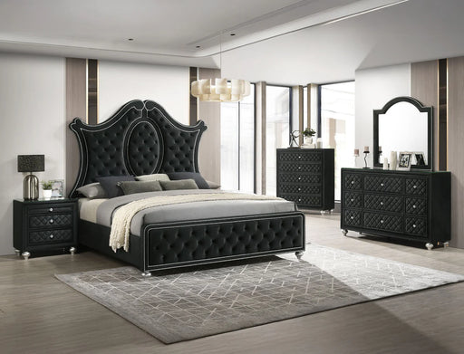 Crown MarkMicah . . . . . . . . . . . . C/M B4350 Bedroom Suites Black Finish, crystal drawer pulls, Contemporary Style, Diamond Tuft Crushed Velvet Padded ...