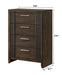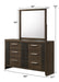Create a warm and inviting retreat with this beautifully crafted bedroom ensemble, where timeless design meets modern functionality. Featuring a rich wood finish and sleek, linear details, this collection strikes the perfect balance between rustic charm and contemporary sophistication. The centerpiece showcases a plush, upholstered headboard framed in deep tones, offering a cozy and elegant touch. Matching storage pieces provide generous space to organize your essentials, all accented with polished hardware for a refined look. Perfect for those seeking style and practicality, this group transforms your space into a harmonious haven.