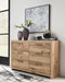 Hyanna - 6 Pc. - Dresser, Mirror, Queen Panel Bed with Footboard Storage - Tan