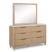 Transform your bedroom into a modern sanctuary with this sleek and sophisticated ensemble. Featuring clean lines and a natural finish, this group exudes understated elegance, seamlessly blending contemporary design with a touch of warmth. The centerpiece boasts a stylishly paneled headboard with textured accents for added visual interest, complemented by matching storage pieces that offer ample space for organization while enhancing the overall aesthetic. A large mirror adds depth and light to the room, creating an inviting and serene ambiance. Perfect for urban living or those seeking a refined retreat, this set combines functionality with timeless appeal.