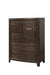 Introducing the Bernards Fulton 38" Wide Chest with 6 Drawers in Soft Taupe Brown, a piece of furniture that blends casual contemporary styling with elegant vintage accents. This chest is designed to provide a relaxed and inviting atmosphere to your bedroom, while also adding a touch of glamour to the space. With its dimensions of 18.6"D x 38"W x 52.5"H, the Bernards Fulton Chest is both spacious and practical. It features six drawers of varying sizes and asymmetrical configurations that allow you to store and organize your belongings with ease. The top drawers are felt-lined, ensuring that your delicate items are protected from scratches and other forms of damage. The soft taupe brown finish of the chest adds warmth and character to any room, while the vintage brushed silver accent trim gives it a touch of elegance and sophistication. The combination of these elements creates a timeless piece that will complement any décor style. Whether you're looking to update your bedroom furniture or simply add a stylish storage solution, the Bernards Fulton 38" Wide Chest with 6 Drawers in Soft Taupe Brown is an excellent choice. Its combination of practicality, style, and sophistication makes it a must-have for any modern bedroom.