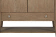 Trilogy Door Chest – Toffee Elevate your space with the Trilogy Door Chest in Toffee, a perfect blend of style and practicality. Featuring two cabinet doors with adjustable soft-close hinges, the chest opens to reveal a thoughtful storage solution. Inside, two drawers are felt-lined, offering protection for delicate items, while an exterior large drawer is cedar-lined, keeping your clothing fresh and organized. The clean, modern design is enhanced by a rich finish, making this chest a versatile piece for your bedroom, living room, or entryway. With both concealed and open storage, the Trilogy Door Chest keeps your space tidy and sophisticated.