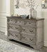 Cottage quaint styling and quality construction make this dresser a dream come true. A two-tone finish provides rustic warmth, with an antiqued gray body and a rich, deep walnut on the top. Framed drawer fronts and dark bronze-tone hardware marry classic elegance and homey charm. Seven smooth-gliding drawers are crafted with quality dovetail construction.
