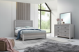 The Adelaide Bedroom Suite is the embodiment of understated sophistication, featuring a neutral drift wood finish that complements its clean and contemporary design. The robust bed frame anchors the room with a sense of sturdiness and style. Accompanying the bed are coordinating pieces: a dresser with a large mirror, a tall chest for additional storage, and a nightstand to keep essentials within reach. Each piece is crafted with sleek, straight lines and fitted with rectangular cup pulls, creating a cohesive look that’s both modern and timeless.