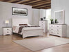 Step into a refreshing retreat with this bedroom collection that embodies a casual, coastal elegance. The centerpiece is a bed with a gently curved headboard, showcasing clean lines and a light, weathered finish that evokes a sense of beachside serenity. The complementary pieces, including a dresser with a simple yet striking mirror, a tall chest, and a versatile nightstand, carry the same airy aesthetic. The soft, neutral tones are accented by sleek, black handles that add a contemporary touch to the otherwise timeless design.