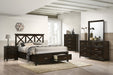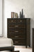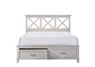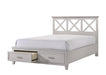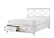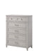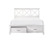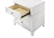 The Nova II Bedroom Set combines a sleek, modern design with added functionality, featuring two built-in storage drawers at the foot of the bed. The crisp white finish and "X" pattern on the headboard offer a stylish, contemporary look that suits a variety of bedroom themes. The spacious storage drawers are perfect for keeping extra bedding, clothes, or other items neatly tucked away, maximizing space and organization. This elegant dresser offers ample storage with a clean, contemporary design. Featuring a combination of smaller top drawers and spacious lower drawers, it provides versatile organization for your wardrobe essentials. The Vertical Chest features five spacious drawers that offer ample room for organizing clothes and accessories. The clean lines and minimalist design make it a versatile addition to any bedroom decor. The matching Nightstand completes your set and offers ample storage for bedside essentials with three spacious drawers. The built-in USB ports allow for easy charging of your devices, making it perfect for today's connected lifestyle. Available in Crisp White, Sleek Gray, or Rich, Dark Brown Cherry finishes