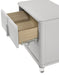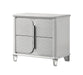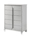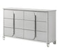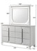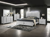 Dive into the luxurious embrace of this chic and polished bedroom collection, where contemporary design meets comfort in a symphony of elegance. At the heart lies a sumptuous bed with a plush, padded headboard with integrated lighting, inviting you to recline in style, while the crisp white and subtle silver tones of the accompanying pieces radiate a serene opulence. Each piece, from the sleek dresser with its refined backlit mirror to the stately chest and convenient nightstands, is crafted with a textured finish, adding depth and interest to the clean, modern lines. The collection's acrylic accents and discreet metal trimmings reflect a minimalist sensibility with a touch of glamour, turning your bedroom into a sophisticated retreat.