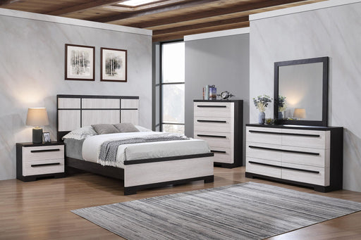 Crown MarkEmbrace the harmonious blend of minimalist design and rustic appeal with this captivating bedroom collection. The sleek, low-profile bed is a moder...