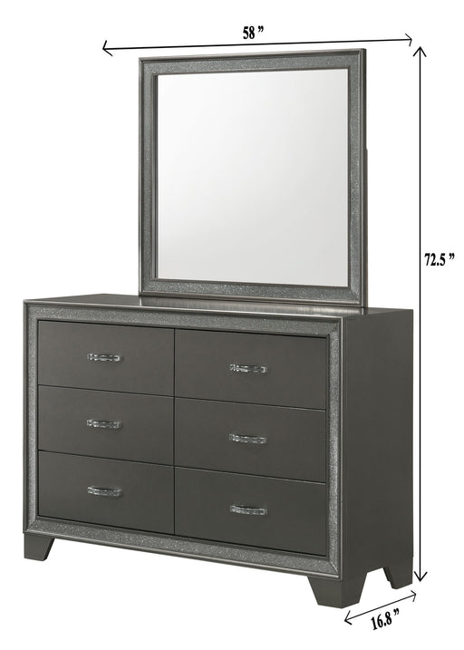 Crown MarkThis bedroom collection is the embodiment of sleek, contemporary design, characterized by its rich gunmetal finish and distinctive textured front p...