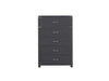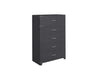 Introducing the Fairbourne 5-Drawer Dresser - a stylish and functional addition to your bedroom decor. Featuring five spacious drawers with ball bearing guides, this dresser provides ample storage space for all your clothing and accessories. The dresser is crafted with a beautiful dark graphite finish, which is complemented by the pipe hardware that adds a touch of industrial flair. The coat/paint distressing gives it a unique and rustic look, with intentionally rubbed or scraped off paint creating a charming, vintage-inspired aesthetic. Measuring at 51 inches in height, 34 inches in width, and 17 inches in depth, this dresser is the perfect size for any bedroom. Its sturdy construction ensures durability and longevity, making it a reliable and practical choice for your storage needs. Upgrade your bedroom with the Fairbourne 5-Drawer Dresser and enjoy its combination of style and functionality.