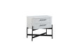 The Fisher Park 2 Drawer Nightstand combines modern convenience with timeless design, making it a perfect addition to your bedroom. Finished in a sophisticated and accented with reeded fronts, this nightstand exudes understated elegance. Its sturdy metal base complements the sleek design, adding a touch of contemporary flair. Practicality meets style with two spacious drawers, featuring felt lining in the top drawer for delicate items and cedar lining in the bottom drawer to keep belongings fresh. Equipped with metal ball-bearing drawer guides, the drawers glide smoothly for effortless access. A built-in USB charging port adds modern functionality, ensuring your devices are always within reach and ready to use.
