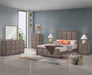 Discover the perfect blend of modern simplicity and understated elegance with this contemporary bedroom collection. Each piece, fashioned with a sleek, minimalist design and a soothing grey oak finish, offers a tranquil backdrop for your personal retreat. The collection is thoughtfully composed of a clean-lined bed frame, a streamlined dresser with ample storage, complemented by a large, practical mirror, and a nightstand that provides easy access to your nighttime essentials.
