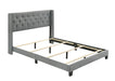 This upholstered bed showcases a classic wingback silhouette for plenty of French country style in your bedroom. The frame is made from solid and engineered wood with a gray finish, and it's wrapped in gray polyester fabric for a versatile look. Foam filling in the headboard gives you the right amount of cushion as you read or relax before bed. Plus, it's accented with button-tufted details and nailhead trim for an extra layer of charm in your space. This bed has center legs that provide additional stability.