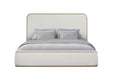 Experience the perfect fusion of refined design and luxurious comfort with the Trilogy Upholstered Bed. Wrapped in a soft, White Sand colored fabric, this bed exudes timeless elegance with a modern twist. The fully upholstered headboard and footboard are framed with subtle wood-toned trim, creating a warm contrast that enhances the bed’s serene and sophisticated profile.