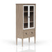 Introducing the Citrus Heights Display Bookcase, a stunning piece that seamlessly blends functionality with timeless elegance. Crafted with meticulous attention to detail, this bookcase boasts a refined Sand Colored finish that exudes warmth and sophistication, making it the perfect addition to any living space. Constructed with high-quality Mindi Veneers, this bookcase showcases the natural beauty of wood grain, enhanced by a subtle wire-brushed texture for added depth and character. Its transitional Casual Elegance design effortlessly complements a variety of interior styles, from contemporary to traditional. Featuring two doors of storage with European soft-close hinges and glass fronts, the Citrus Heights Display Bookcase provides both practicality and visual appeal. Behind the glass doors, two spacious storage shelves offer ample room to display your favorite books, decorative accents, or cherished collectibles, allowing you to showcase your personal style with ease. Below the glass doors lies a deep storage drawer, providing convenient organization for additional items, keeping your space clutter-free and organized. Whether used in the living room, study, or bedroom, this versatile bookcase adds a touch of sophistication while offering functional storage solutions. Elevate your home decor with the Citrus Heights Display Bookcase, where craftsmanship meets beauty, and elegance meets practicality.