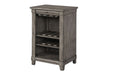 Introducing the Hartford Wine Storage Cabinet - the perfect addition to your dining or sitting room! Designed with both style and functionality in mind, this cabinet boasts a warm grayish-brown finish that complements any decor. With built-in hangers for your wine glasses, eight wine bottle racks, a pull-out tray for serving, and a bottom shelf for additional storage, this cabinet has everything you need to entertain your guests in style. The casual elegance of the Hartford Wine Storage Cabinet is unmatched, and its measurements of 38'' H X 19'' W X 24'' D make it the perfect size for any space. Pair it with our matching collection pieces, including the dining table, side chairs, and upholstered chairs to complete the look and create a cohesive atmosphere in your home. Upgrade your home decor with the Hartford Wine Storage Cabinet, and experience the perfect combination of style and functionality!