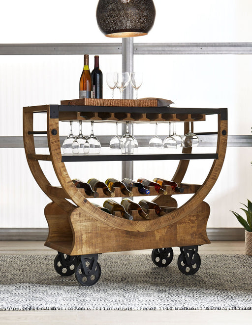 Liberty FurnitureThe Danley accent bar trolley offers function with beauty. Crafted of solid rough cut mango with a powder coated metal top and middle shelf for yea...