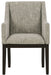 Dressed to thrill, this simply stunning host chair offers a high-design look at a down-to-earth price. Ultra sleek lines are accentuated with a dark waxy brown oak-tone finish that’s so easy on the eyes. Suitably upholstered in a tweed-like neutral fabric, the slope-arm design is tailor-made for comfort. Whether it's part of a dining arrangement or used as extra seating, it has a timeless look that’s made to last.