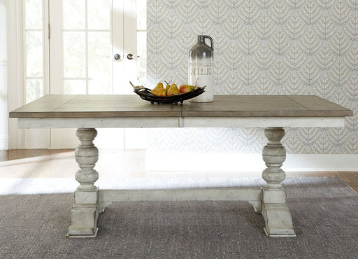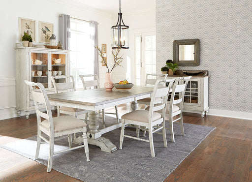 Liberty Furniture661W-CD-7RTS Trestle Table Set: 7 Piece, Table and 6 Chairs • 661W-CD-7RTS • Finish: Antique Linen w/ Weathered Gray Finish • Rubberwood Solids w/ ...