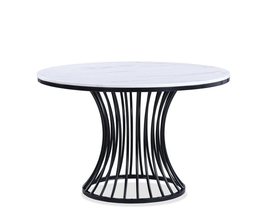 Crown MarkBold and contemporary, this dining group makes a statement with its dramatic marble-look top and sculptural black pedestal base. The striking table...