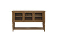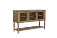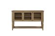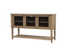 The Tarrington Server with Mesh Door Fronts in finish brings timeless farmhouse character and versatile storage to your dining space. Crafted with durable veneers, this piece features three framed doors accented with decorative mesh fronts, blending rustic charm with a hint of industrial flair. Behind the doors, roomy shelving provides ample space for dishes, glassware, or entertaining essentials, while the open lower shelf adds both storage and display options. The turned legs and warm Almond finish highlight the natural grain of the wood, giving the server a refined yet casual appeal. Perfect for dining rooms or kitchens, it pairs functionality with a stylish, transitional design that fits seamlessly into a variety of interiors.