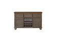 Introducing the epitome of rustic elegance and functional design, The Will Server with Power Pack brings unparalleled charm and utility to your home. Crafted with meticulous attention to detail, this server seamlessly blends traditional aesthetics with modern functionality, making it a versatile addition to any space. At its core, The Will Server features a robust power pack, ensuring your electronic devices stay charged and ready for use, whether you're hosting a dinner party or simply enjoying a cozy evening at home. With its thoughtful inclusion of three spacious storage drawers and two storage cabinets, this server offers ample room to stow away dining essentials, linens, and more, keeping your space organized and clutter-free. Designed to cater to wine enthusiasts, The Will Server boasts a dedicated wine glass holder and wine bottle storage, allowing you to showcase your favorite vintages in style. Whether you're a seasoned sommelier or an occasional wine connoisseur, this server provides the perfect platform to display and access your cherished wine collection. The two-tone finish adds a touch of visual interest to the piece, with a sophisticated gray base complemented by a warm brown top, creating a harmonious contrast that elevates its rustic charm. This harmonious blend of colors ensures The Will Server effortlessly integrates into a variety of décor styles, from farmhouse chic to classic traditional. Elevate your dining experience and enhance your home décor with The Will Server with Power Pack. With its timeless design, ample storage options, and convenient features, it's the perfect companion for entertaining guests or simply enjoying everyday meals with family and friends.