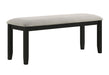 This dining group is the epitome of modern sophistication and functional elegance. The centerpiece is a sleek, rectangular table with a beautifully textured wood grain finish, offering a touch of rustic charm to its contemporary design. The table is complemented by a set of four ladder-back chairs and a versatile bench, all featuring a deep black frame that provides a striking contrast to the neutral, upholstered seats. The cushioned seating ensures comfort, while the bench adds flexibility and a communal feel, perfect for both family meals and entertaining guests. The overall design is enhanced by clean lines and a minimalist aesthetic, making this set a stylish focal point for any dining space.