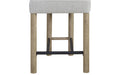 Pagosa Upholstered Counter Height Stool Material: English Knotty Oak Frame Upholstery: Performance Fabric Finish: Light Natural Oak Style: Modern Organic • Contemporary Rustic • Transitional Overview The Pagosa Upholstered Counter Height Stool combines clean-lined design with inviting comfort, creating a versatile seating option for modern and transitional spaces alike. Built from English Knotty Oak, the stool features the authentic beauty of natural wood grain and subtle knots, enhanced by a warm light oak finish that brings organic texture to any setting. A plush upholstered seat and back provide exceptional comfort and support, while the black metal footrest adds a touch of modern contrast and durability. Whether paired with the Pagosa Counter Height Table or used at a kitchen island, this stool is designed for both style and everyday function.