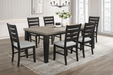 This dining group effortlessly combines farmhouse warmth with modern sophistication, creating a captivating focal point for any dining space. The table features a rich, two-tone design with a beautifully finished wood top and contrasting dark legs, delivering a striking visual appeal that suits various decor styles. The ladder-back chairs and tufted bench offer both style and comfort, with plush upholstery in a versatile neutral tone that invites guests to linger. With its blend of rustic charm and contemporary flair, this set is perfect for both intimate family meals and lively gatherings, making your dining area a stylish and welcoming retreat.