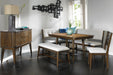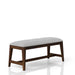Transform your dining area with the Dorval Breakfast Nook. The rich walnut finish on the table and unique crisscross base add a touch of elegance to any room. Whether used as a dining set or in a cozy breakfast nook, this square table is the perfect addition for gathering, entertaining, and creating memories. The stylish Dorval 3-piece Curved Bench with Back, crafted with a chic walnut finish and plush gray upholstered seat and back, this bench adds both sophistication and comfort to your space. Add a matching chair to create the perfect dining nook with the Dorval collection today!