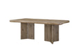 Pagosa Double Pedestal Table The Pagosa Double Pedestal Table exemplifies natural elegance and refined craftsmanship, combining organic design with modern functionality. Constructed with English Knotty Oak Veneer, this table celebrates the beauty of authentic wood grain and texture, bringing warmth and character to any dining or gathering space. The tabletop features softly contoured edges and an undulating live-edge-inspired shape, creating a fluid, natural silhouette that feels both grounded and contemporary. Supported by two sculptural pedestal bases, the design achieves a perfect balance of strength and artistry, ensuring stability while maintaining an open, airy feel. A true statement piece, the Pagosa Double Pedestal Table transforms dining into an experience of style and craftsmanship — ideal for both casual and formal settings.