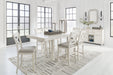 Robbinsdale - 8 Pc. - Rectangular Counter Height Dining Extension Table, 6 Barstools, Server - Antique White