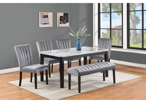 Pascal Black & White Faux Marble Dining Sets by Crown Mark . . . . .  2224T-3864/S/BENCH Elevate your dining space with this luxurious and mode...
