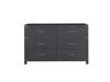 The Fairbourne 6-Drawer Dresser is the perfect addition to your bedroom furniture collection. With six spacious drawers, this dresser provides ample storage space for all your clothing and accessories. The drawers feature ball bearing guides, ensuring smooth and quiet operation every time you open or close them. This dresser is not just functional, but it is also designed with style in mind. The pipe hardware adds an industrial touch, while the dark graphite finish gives it a sleek and modern look that will complement any decor style. The coat/paint distressing technique gives it a vintage, lived-in feel, with paint purposely rubbed or scraped off in certain areas to create an intentional distressed look. Measuring 36 inches in height, 58 inches in width, and 17 inches in depth, the Fairbourne 6-Drawer Dresser is the perfect size to fit in any bedroom. It is both practical and stylish, making it an ideal addition to any home. Upgrade your bedroom with the Fairbourne 6-Drawer Dresser and enjoy the perfect combination of functionality and style in one beautiful piece of furniture.
