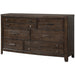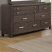 Introducing the Bernards Fulton 66" Wide Dresser in Taupe Brown - the perfect blend of casual contemporary styling and elegant sophistication. With its 19"D x 66"W x 37.6"H dimensions, this dresser offers ample storage space to help you declutter your bedroom. Featuring ball bearing guides, this dresser's 8 drawers are designed to open and close smoothly, making accessing your clothes and other items a breeze. The asymmetrical drawer configurations add a unique touch to the overall design, while the vintage brushed silver accent trim adds a touch of glamour. The felt lined top drawers add an extra layer of protection for your delicate items, while also providing a luxurious feel. With its relaxed and inviting atmosphere, this dresser will be the perfect addition to any bedroom, bringing both functionality and style to your space. Upgrade your bedroom today with the Bernards Fulton 66" Wide Dresser in Taupe Brown and experience the perfect blend of style, sophistication, and practicality.