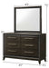 This contemporary bedroom set boasts a sophisticated aesthetic, characterized by its deep espresso finish that speaks to modern tastes. The clean-lined bed features an elegantly tufted headboard, offering both comfort and style, and is complemented by streamlined nightstands and a dresser with a sleek, matching mirror. The brushed metal hardware provides a subtle contrast, highlighting the set’s chic and urbane design.