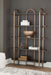 With its mixed-material look, this bookcase seamlessly fits into a wide range of modern settings. Five fixed display shelves in a dark brown finish are balanced by sleek antiqued goldtone metal supports. Offering storage and superior style for books or showcasing decor, this bookcase is a masterful way to stay organized.