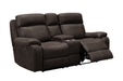 Console Loveseat Features Under Center Armrest Storage and Cup Holders