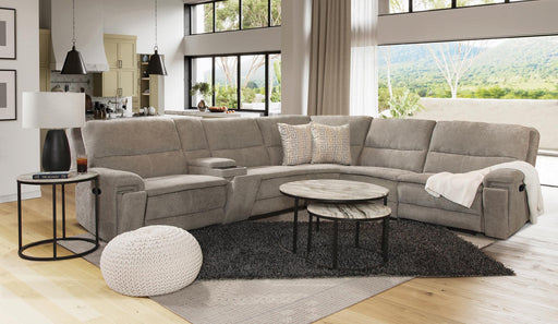 CTCFeatures: Cover: Venture Steel Fabric Sectional Has 3 Manual Recliners & 1 Console w/ Cupholders 6 Piece Manual Reclining Sectional Consistin...
