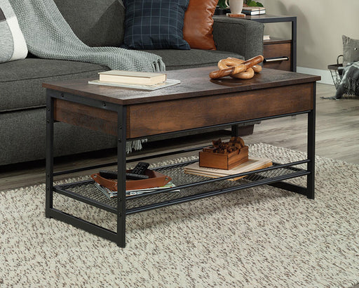 CTCSA430269 RTA Oak Lift-Top Coffee Table With Storage by Sauder Features: Finish: Barrel Oak Powder Coated Metal Shelf & Frame Top Lifts Up &a...