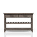 Introducing the Hartford Hallway Accent Table, the perfect addition to any home looking for a touch of casual elegance. This table features a warm grayish brown finish that complements any decor style. The Hartford Hallway Accent Table offers ample storage space with its 10 bottle wine rack, 2 spacious drawers with ball bearing guides, and a bottom shelf for additional storage or display options. The wine rack is designed to securely hold your favorite bottles, while the drawers provide a convenient place to store accessories such as bottle openers or corkscrews. Measuring at 48"W x 14"D x 30 3/8"H, this table is the perfect size for a hallway, foyer, or living room. Its versatile design allows it to be used in various spaces throughout your home. Additionally, this table coordinates with the matching collection pieces, including the Cocktail Table, End Table, and Chairside Table. Crafted with high-quality materials, this table is built to last and withstand daily use. The Hartford Hallway Accent Table is the perfect blend of style and functionality, making it a must-have for any home. Order yours today and elevate the look of your home with this stunning accent piece.