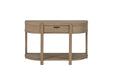 Trilogy Curved 1-Drawer Console Table – Toffee Add a touch of refined elegance to your entryway, hallway, or living room with the Trilogy Curved 1-Drawer Console Table. Finished in a warm Toffee tone, this console table features a gracefully curved silhouette that brings a soft, contemporary look to any space. The single drawer offers convenient storage for smaller essentials, while the open shelving provides additional display space for décor or everyday items. Crafted with clean lines and refined detailing, this console table blends form and function effortlessly. Dimensions: 48 1/2" L x 18" W x 30" H