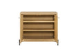 The Tarrington Accent Door Chest brings refined storage and artisan-inspired design to your living space. Crafted with beautiful Hickory veneers and finished in a warm Cashew tone, this piece highlights natural wood grain with a distinctive geometric veneer pattern on the doors for added visual interest. Behind the two-door cabinet, adjustable shelving provides versatile storage for household essentials, from dining accessories to office supplies. The clean-lined case design is elevated by metal legs, creating a subtle contrast that adds a modern touch while maintaining a warm, transitional feel. Perfect for use in a living room, dining area, or entryway, the Tarrington Accent Door Chest combines function, texture, and timeless style in one elegant storage solution.