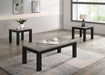 Enhance your living space with this contemporary cocktail table set, meticulously designed to infuse elegance into everyday living. The set features a robust coffee table and two matching end tables, each boasting a sleek, minimalistic design that seamlessly integrates into any modern décor. The rich, textured tabletops in a faux concrete contrast beautifully with the stark black finish of the sturdy legs, offering a visual anchor to your seating area. Ideal for both functional use and aesthetic appeal, these tables provide ample surface space for your beverages, books, and decorative items, while maintaining a clean and uncluttered look.