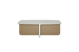 Trilogy Vanilla Accent Cocktail Table Elevate your living space with the Trilogy Vanilla Accent Cocktail Table, a perfect blend of modern sophistication and timeless design. Crafted with clean lines and soft, rounded edges, this table features a light vanilla finish that enhances its versatility, seamlessly complementing various décor styles. Its minimalist design makes it an ideal centerpiece for any room, providing a stylish surface for displaying décor or hosting your favorite beverages. Dimensions: 50" L x 26 1/4" W x 17" H