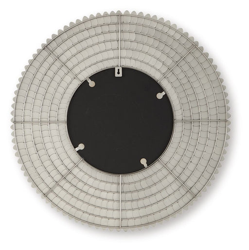 Signature Design by Ashley®This accent mirror makes a bold statement in contemporary and industrial spaces. Framed with sunburst-style metal fretwork and finished in a luxe b...