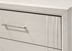 This elegant bedroom collection presents a sophisticated ensemble perfect for creating a refined modern aesthetic in your sleeping quarters. The suite features a sleek, minimalist design with crisp, clean lines and a lustrous white finish that exudes contemporary charm. Anchoring the set is a robust panel bed with a prominent headboard, promising a sturdy and stylish centerpiece. Flanking the bed are complementary case pieces, offering ample storage with their smooth-gliding drawers accented with chic silver-toned hardware.