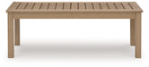 This coffee table is a beautiful addition to any outdoor living space. Effortless in its simplicity, this piece echoes your easygoing sensibilities. Combining durable, cutting-edge engineered materials, its Weatherwood construction in a blond wood color enhances the contemporary design. Pair this table with the matching sofa and chairs for a spectacular backyard or patio seating arrangement.